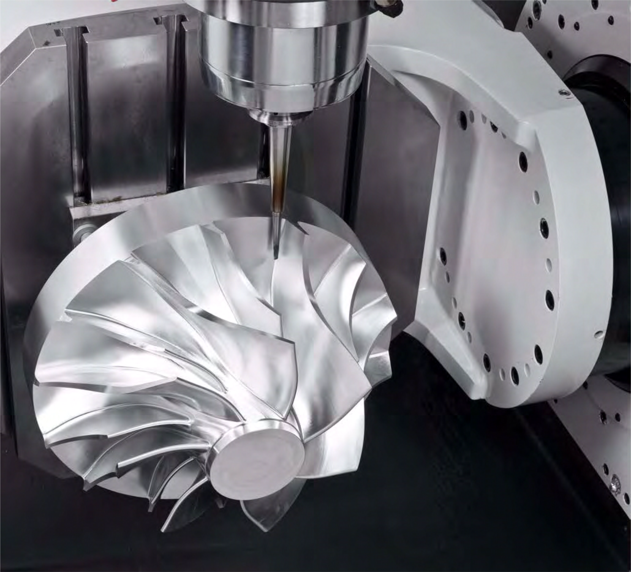 Станок отличается высокой точностью, динамичными характеристиками, эффективностью, жесткостью и малой занимаемой площадью. Это отличное оборудование для многозадачной обработки сложных пресс-форм, турбин, лопастей крыльчатки, автомобильных, авиационных, медицинских деталей и корпусов, которые имеют сложные контуры/углы и изготовлены из алюминиевого сплава, титана, жаропрочного или другого материала.