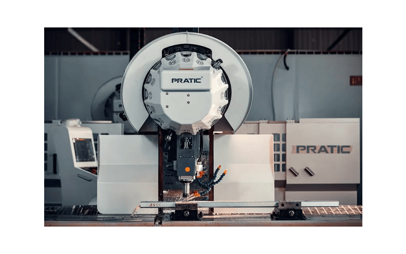 Pratic PIC является компактным обрабатывающим центром, который оснащен 3-осевой подвижной колонной и ЧПУ и рассчитан на обработку рам разной длины. Имеет встроенные функции фрезерования, сверления и нарезания резьбы. Обеспечивает ысокоточную обработку алюминия, стали, меди и неметаллического материала.