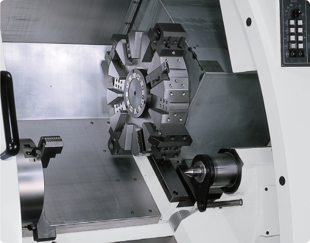 8-ми позиционная револьверная головка позволяет производить обработку различными инструментами и их комбинациями. Конструкция головки обеспечивает хорошую фиксацию инструмента, а также максимальную точность обработки.